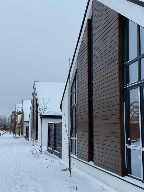 Затишний, закритий житловий простір на семи гектарах включає 5 різних видів сучасних котеджів у стилі барн-хаус площею від 95 м² до 200 м².
