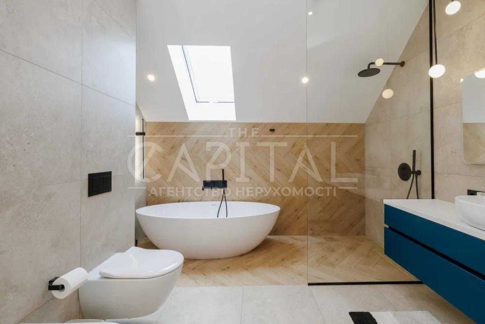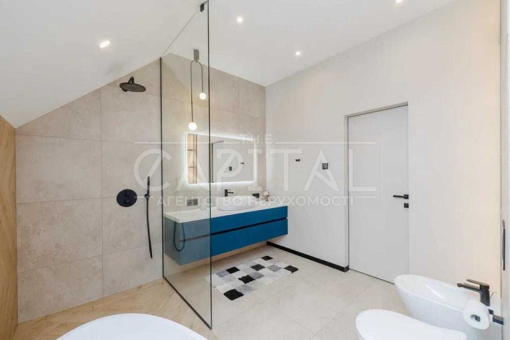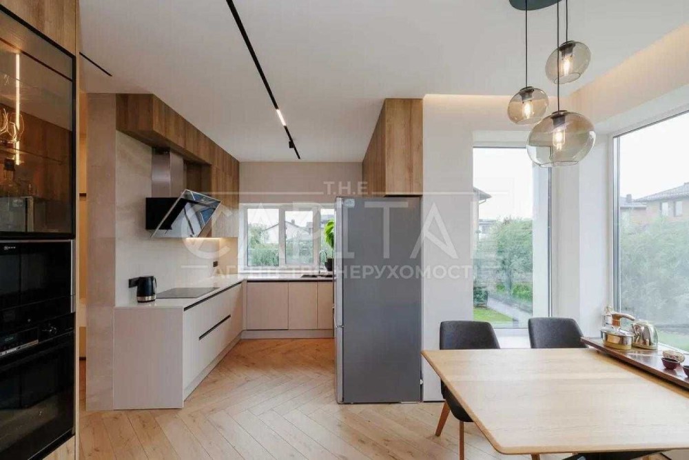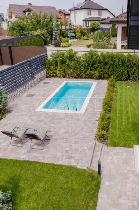 Софіївська Борщагівка, 200 кв.м., +40 кв.м Сауна. 2020 року побудови. Якісний, сучасний ремонт, 4 спальні, кухня-вітальня, три санвузла, гараж. Сауна з підвалом. Басейн. Зона барбекю. Ділянка 8 соток - ландшафтний дизайн. Комунікації: Газ, Електрика, Свердловина, Септик.