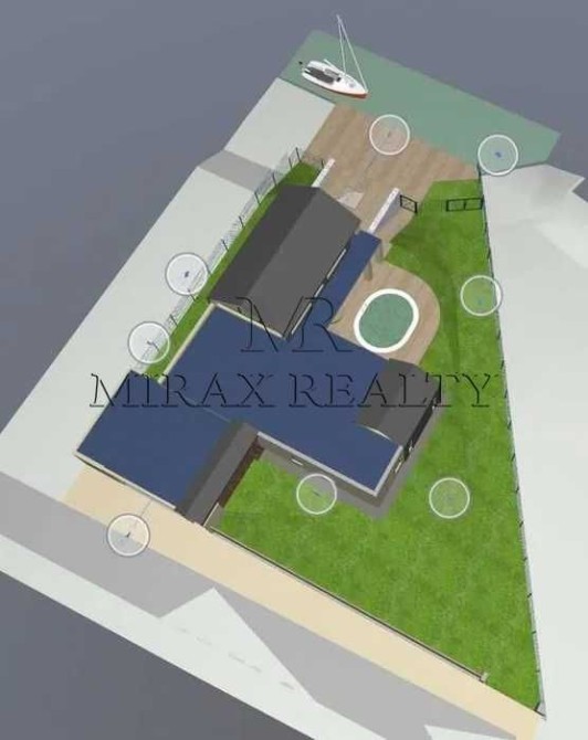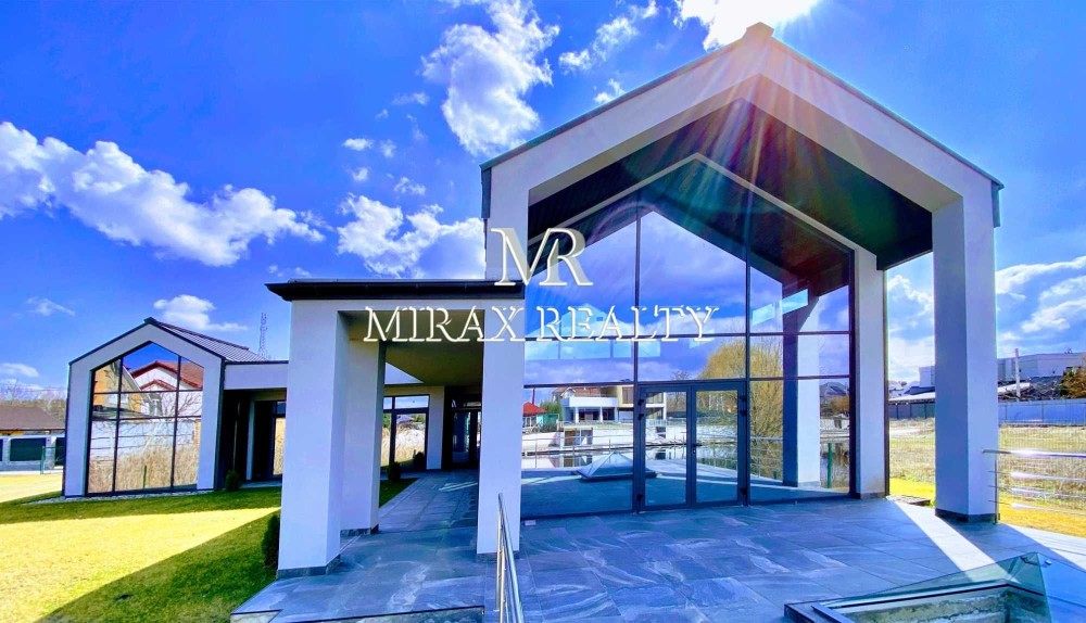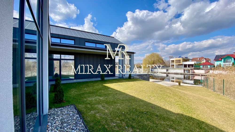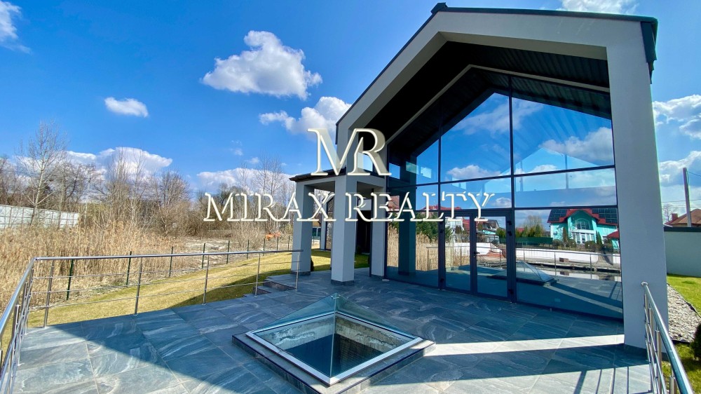 Продаж будинку 212 м2 у стилі BarnHouse з власним пірсом, виходом на р. Стугна та виходом у р. Дніпро, Таценки. Стильний унікальний проект. Три окремі кімнати (включаючи «Master-bedroom» з санвузлом та великим гардеробом), кухня-студія з двома окремими коморами, камінний зал зі стелями висотою 6м та виходом на велику терасу (52 м2) з видом на воду, вітальня з двома вбиральнями , бойлерна/пральня, літня кухня під терасою зі скляною пірамідою-світловим ліхтарем та доступом до пірсу із укріпленим берегом. Критий майданчик на два автомобілі з секційними воротами та господарськими приміщеннями. Усі кімнати, кухня, вітальня та камінний зал мають панорамні вікна та окремі виходи через двері-купе у внутрішній двір та пірс.