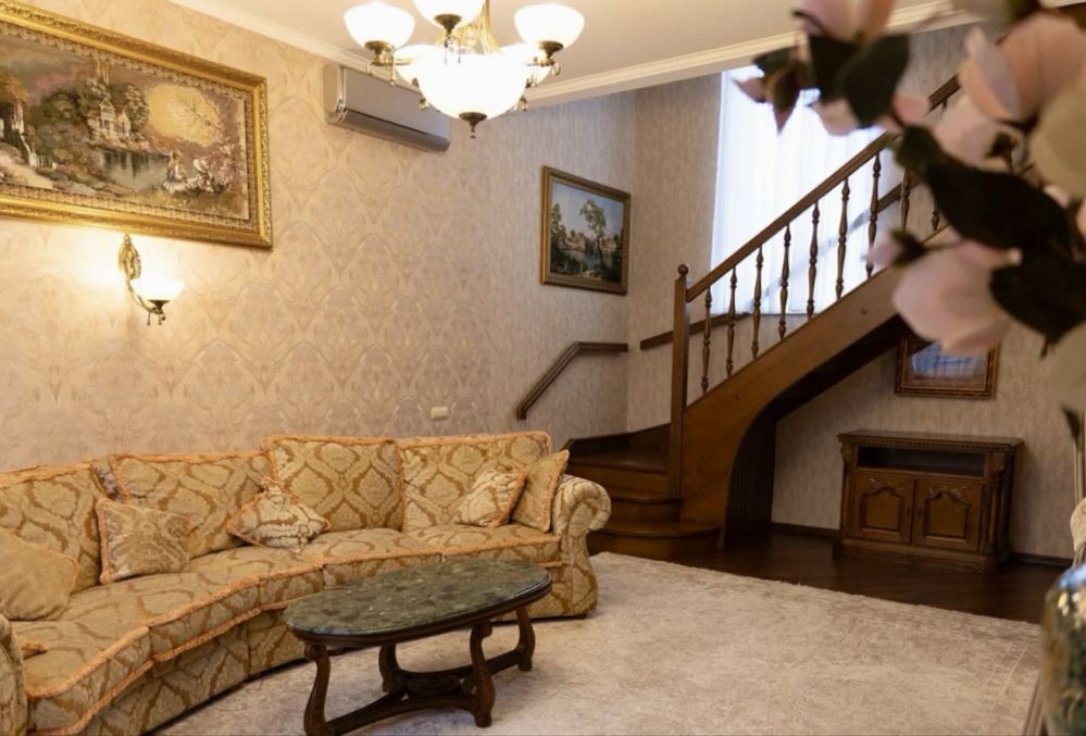 Основний будинок 170 м²: 2 поверхи, 4 кімнати, 3 спальні, стильний класичний ремонт.
