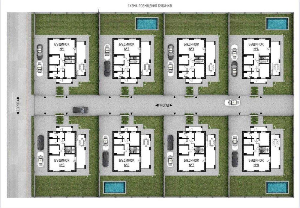 - Двір: бруківка, газон, можливість басейну