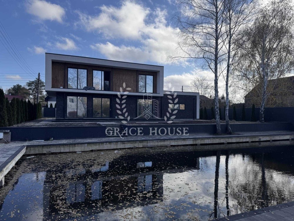 Двоповерховий котедж загальною площею 270м. кв. із виходом на озеро ділянку 8.5 соток. Готовність під чистове оздоблення, комунікації розлучені.