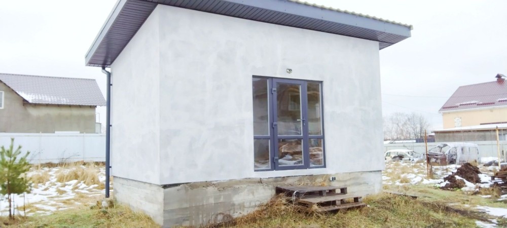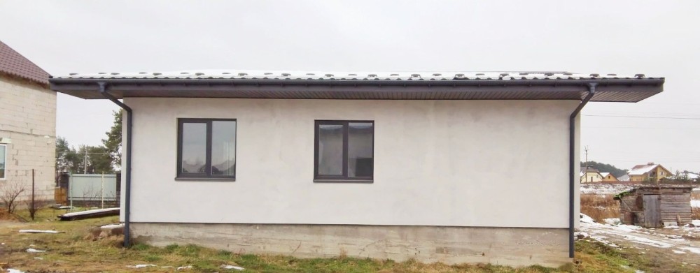 Ділянка правильної прямокутної форми. Будинок утеплений ззовні, підведено 380В. Без внутрішніх робіт. Встановлені металопластикові вікна.