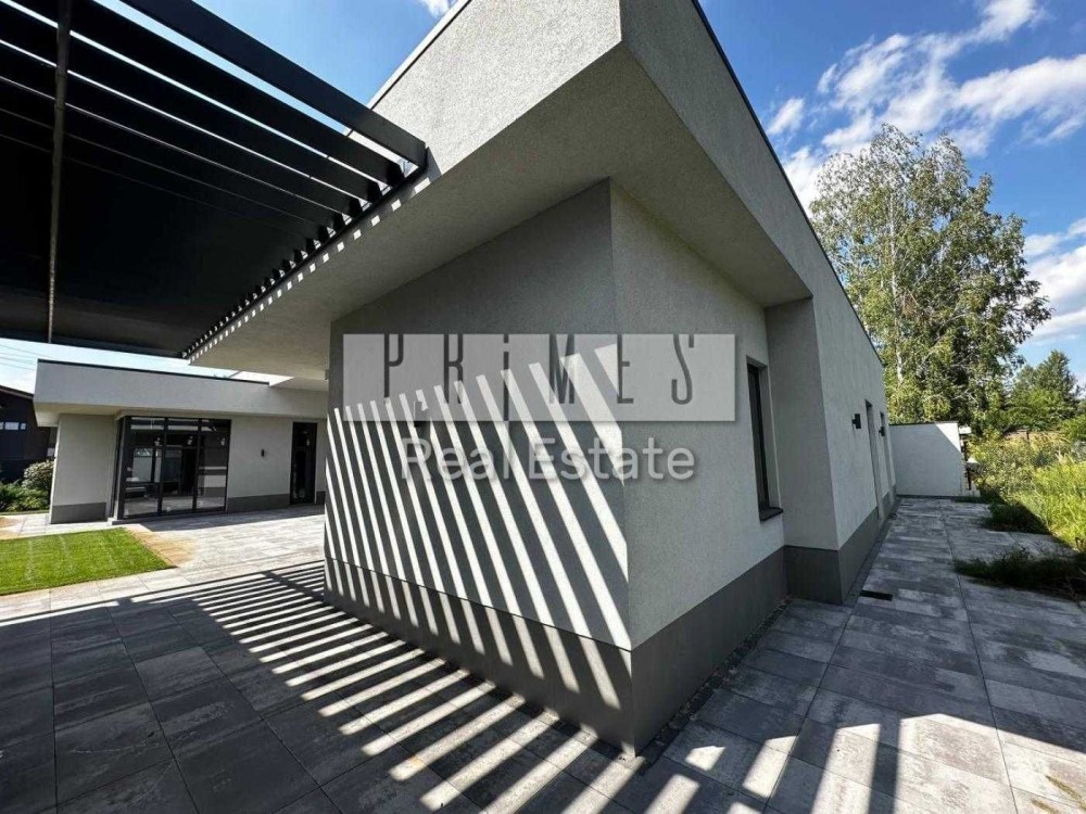 Пропонується ділянка площею 10 соток із сучасним одноповерховим будинком загальною площею 320 м², а також окремим гостєвим будиночком 45 м².
