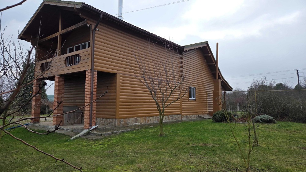 Продається просторий деревʼяний будинок з профільованого брусу, збудований з американської сосни за канадською технологією, у с. Осикове, Макарівський район (Фастівський), Київська область.