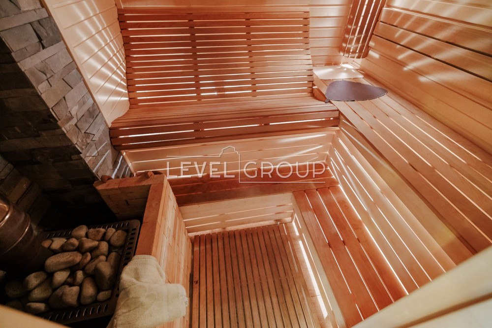 -Окрема баня/сауна з панорамнім склінням, живим каміном, кімнатою відпочинку та повноцінною кухнею