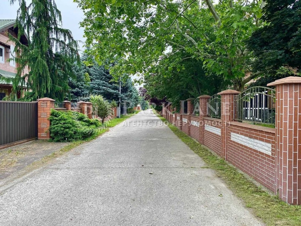 Земельна ділянка 24 сотки, квадратної конфігурації з широким фасадом, паркан з цегли, дорослі дерева, два заїзди, літній навіс для авто. Чудове розташування, цілодобова охорона, поруч гольф клуб та заповідна зона.
