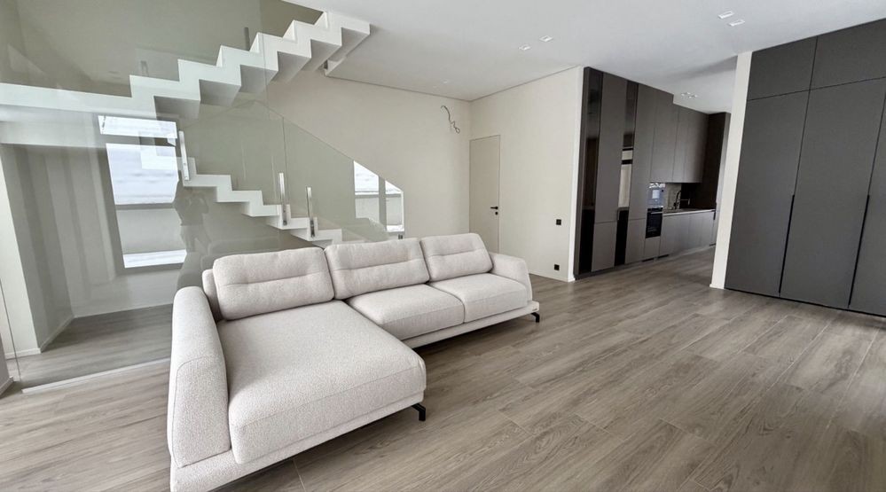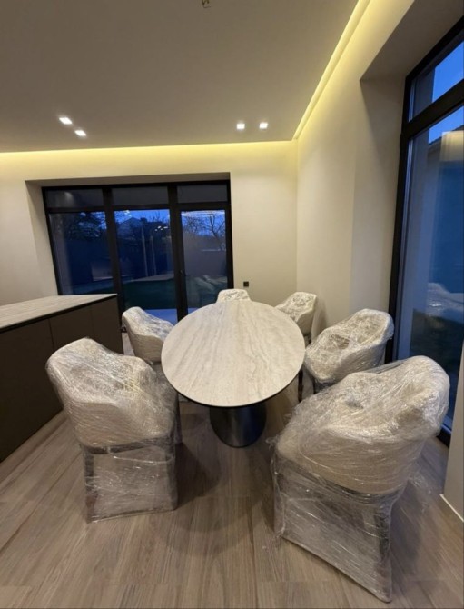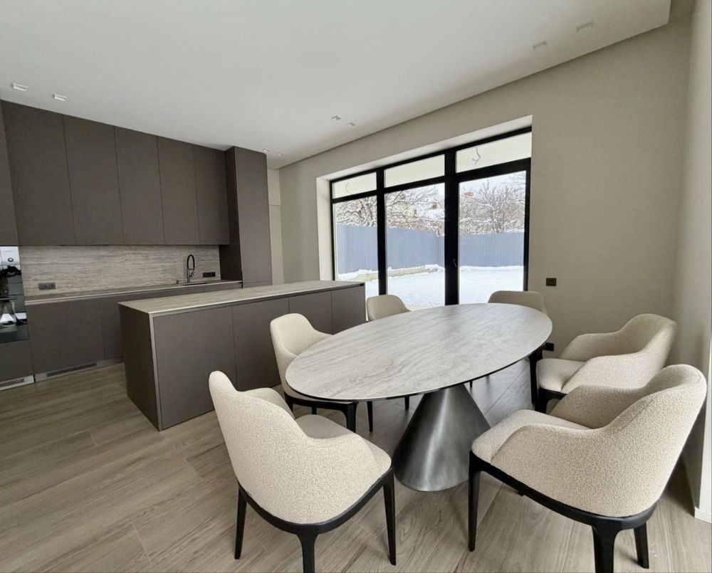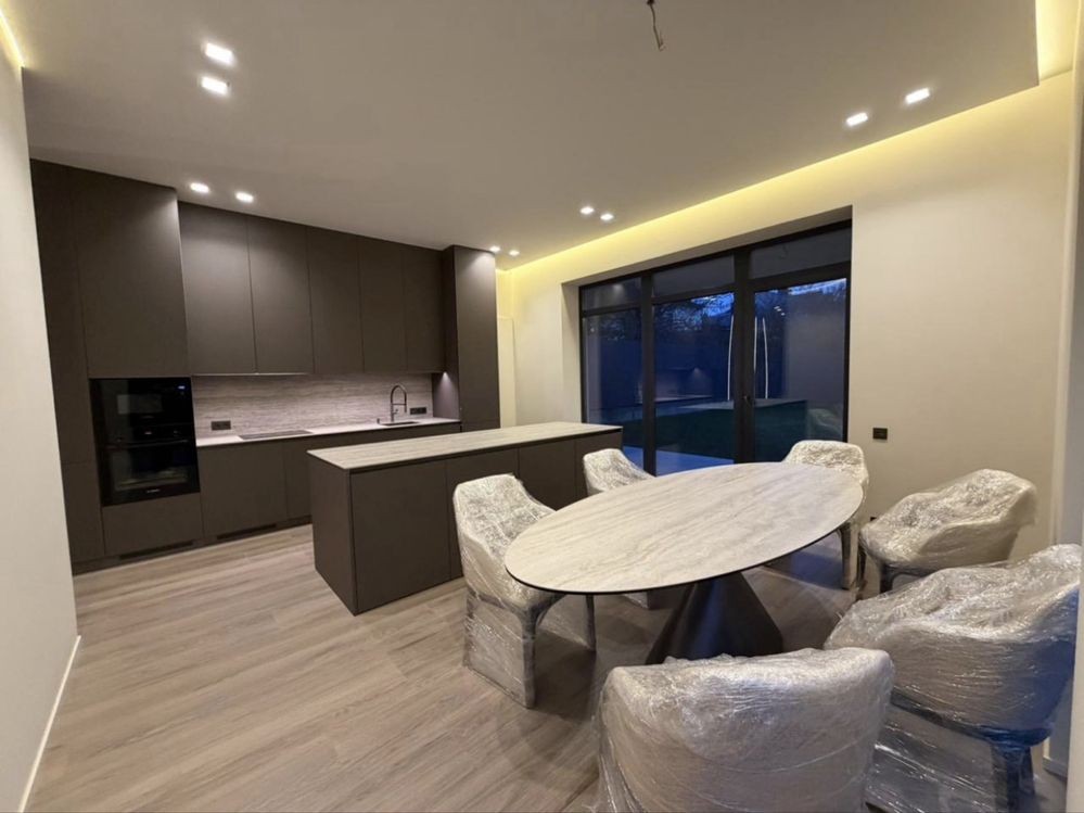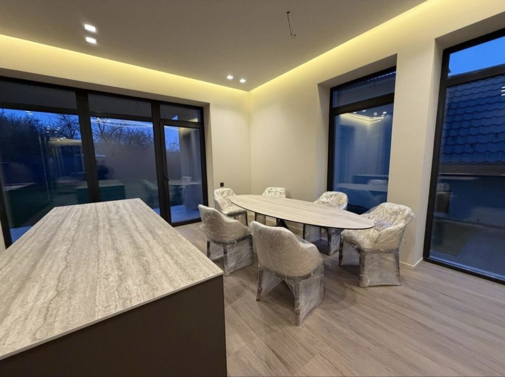 Будинок двоповерховий загальною площею 165 кв.м. Перший поверх: вітальня, санвузол, комора, кухня-студія з виходом на терасу. Другий поверх: три житлові кімнати, ванна/душова/санвузол, гардероб. Загальна площа ділянки - 5 соток.