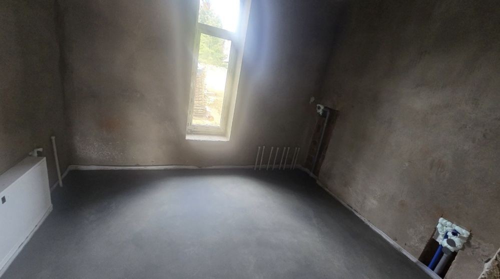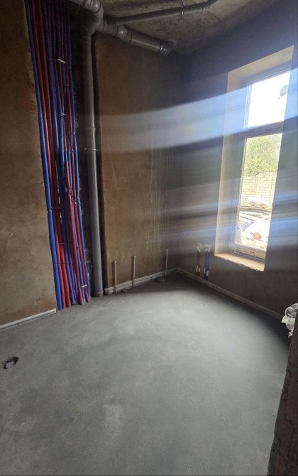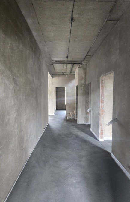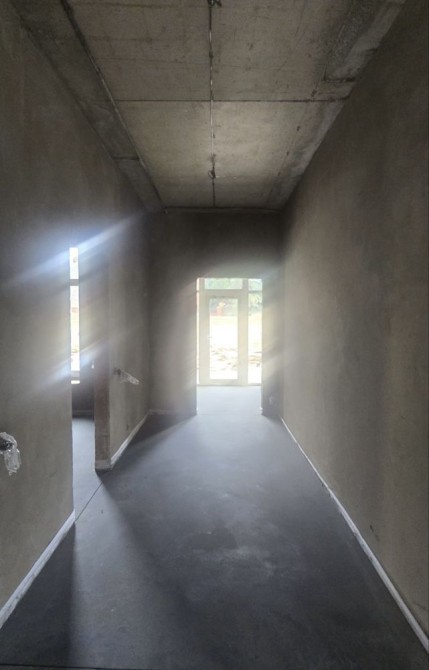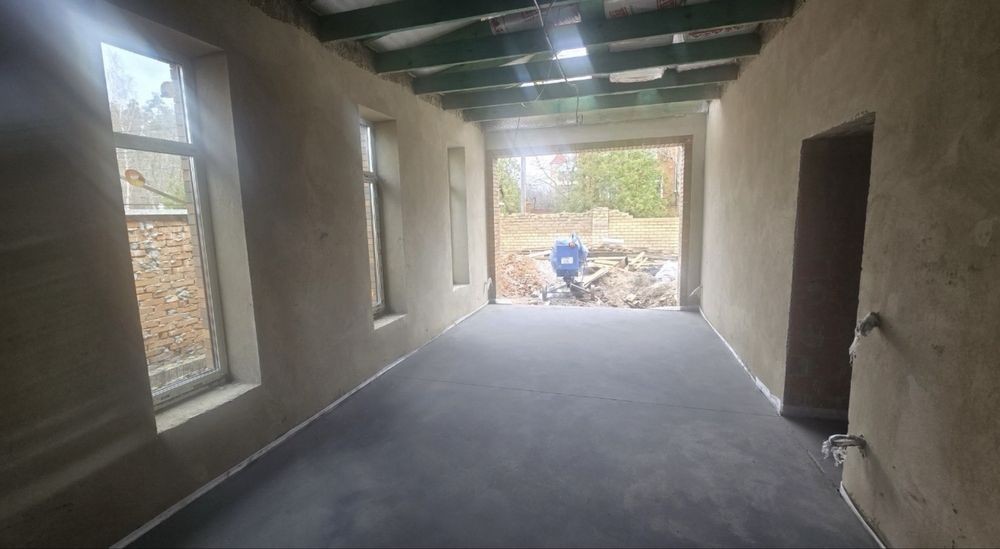 Штукатурка, залита чистова стяжка. Залізобетонне перекриття (моноліт)між першим і другим,другим і горищем також залізобетон