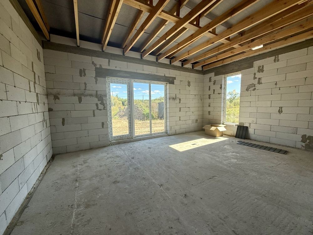 Велика , гарна ділянка 5.3 сотки , скважина , септик , електрика 10 КвТ. Будинок 80 м2 кухня - вітальня , 2 спальні , санвузол , котельня . На підлозі чорнова стяжка . До супермаркету "Фора" - 7 хв пішки , також поруч озера і центр села . До Києва - 7 хв на авто , або 10 хв на транспорті .
