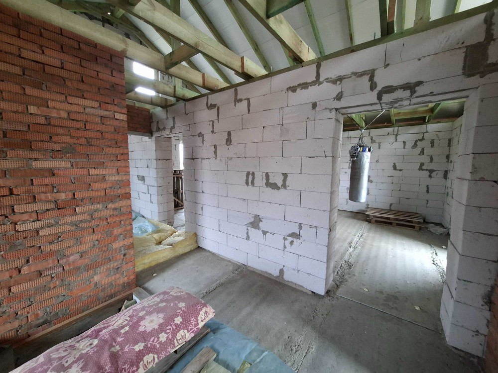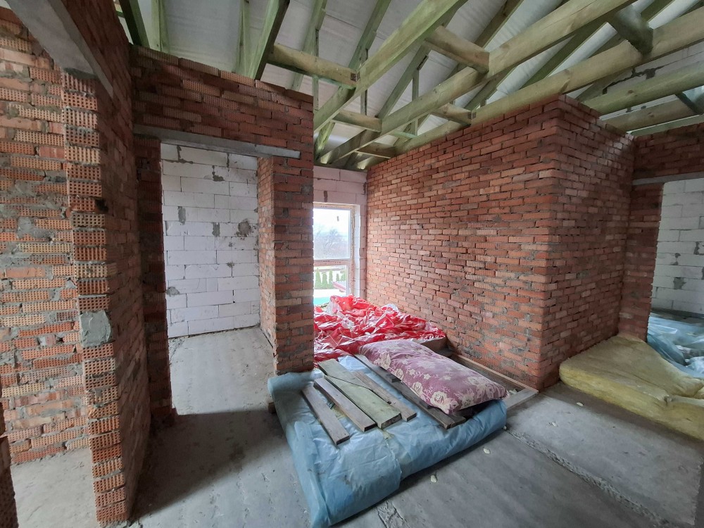 Будинок будувався для себе, на совість, дуже якісна побудова, укріплювався додатково армопоясами. Між поверхами панельні перекриття.