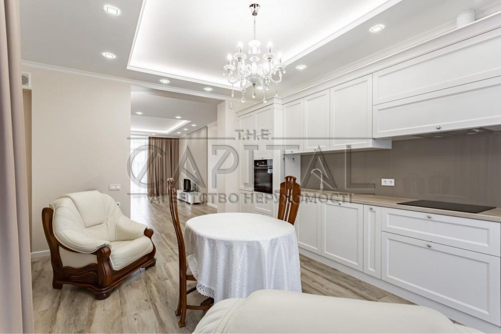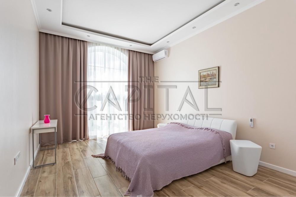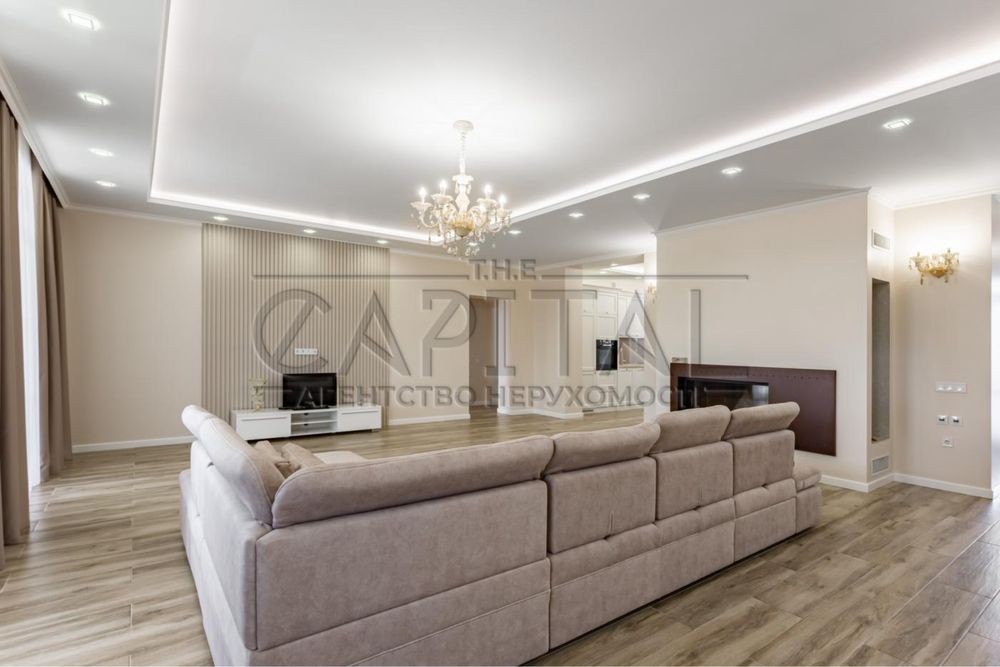 На першому поверсі знаходяться: велика вітальня з каміном і виходом на терасу з чудовим видом на залив Дніпра, 3 спальні кімнати, вбиральня, кухня з обідньою зоною, передпокій з виходом в гаражне приміщення для авто, 2 санвузли.