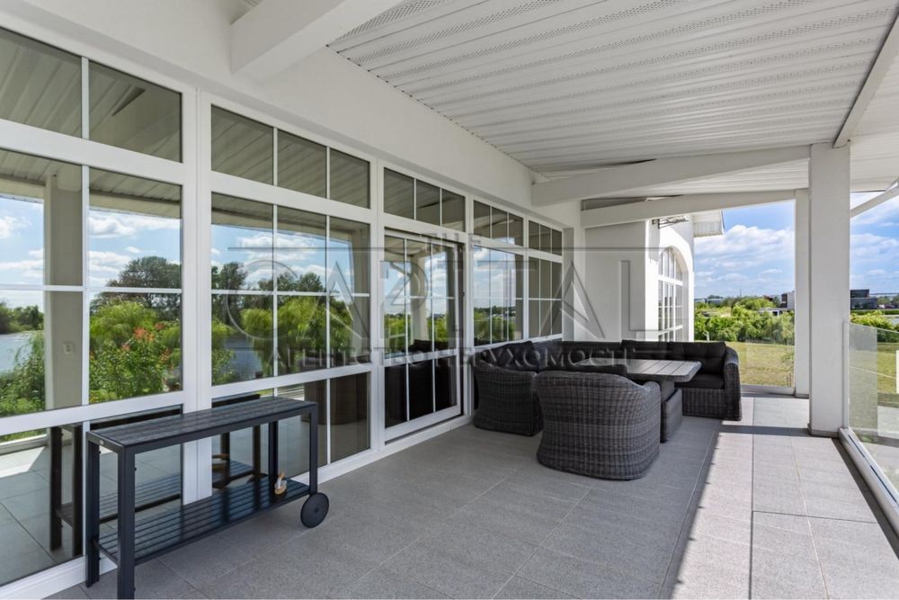 Пропонується на продаж красивий і сучасний будинок площею 453 м2 , на 35 сотках, з ландшафтним дизайном, в мальовничому місці — на півострові зі своєю береговою лінією і чудовим краєвидом у Вишеньках (Осокорки).