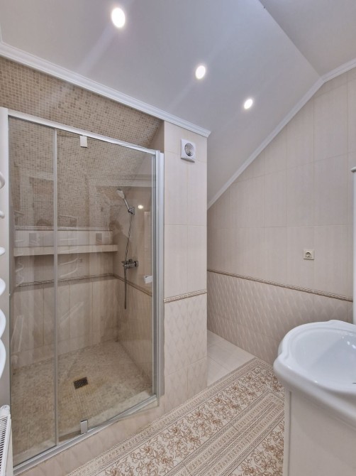 В цокольному поверсі : сауна, душ, тренажер, котельня: електрокотел та система очисти води, пральна та сушильна машини автомат.