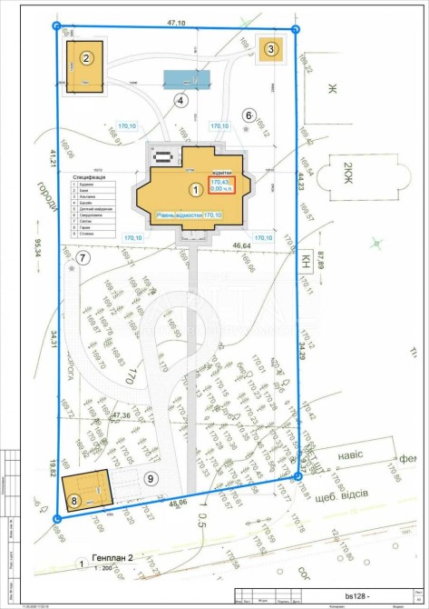 -запроєктовано гараж на 2 авто, криту стоянку та баню (підведені комунікації, закуплені матеріали, гараж готовий на 50%)