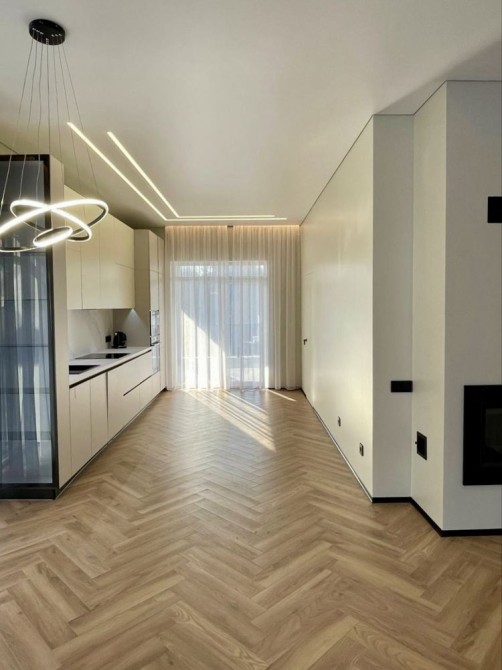 три окремі спальні, два санвузли, кладова, простора кухня-вітальня з каміном, тераса з панорамним видом на ліс.