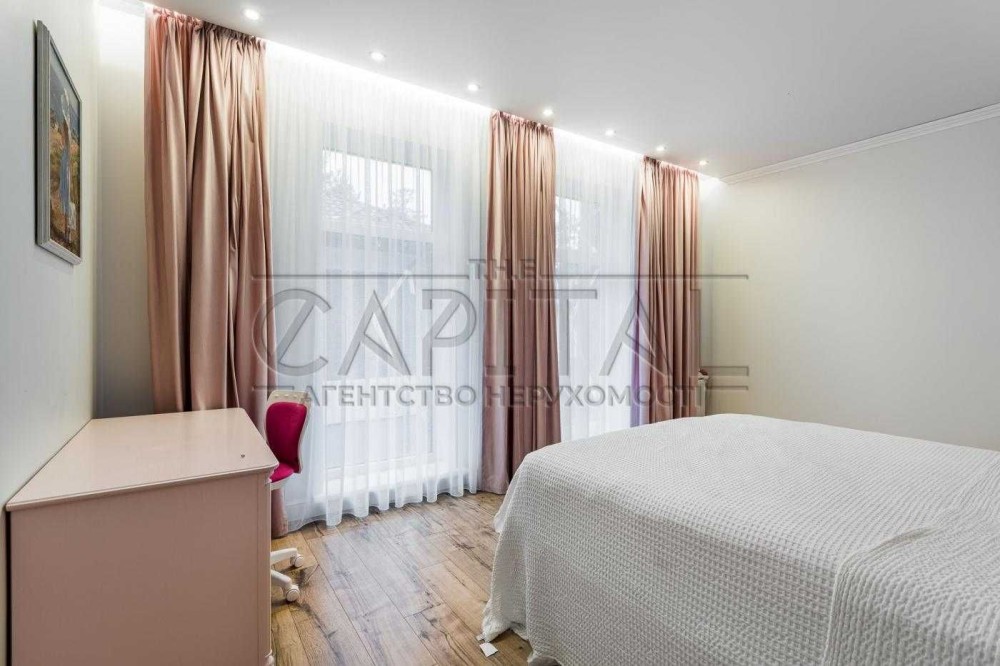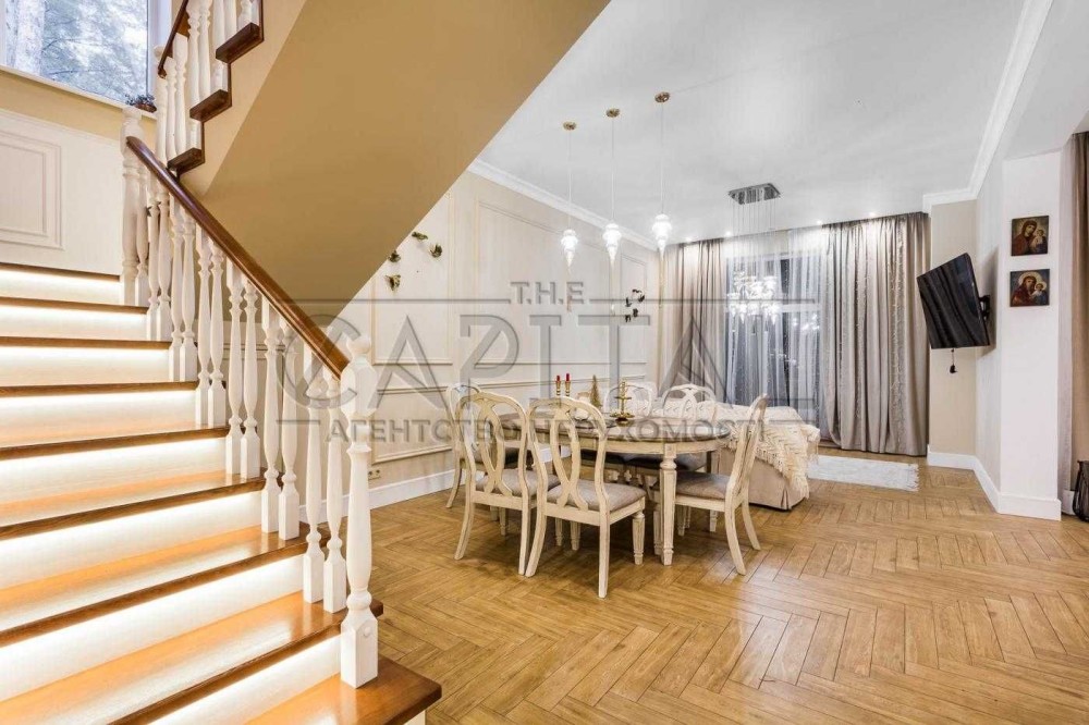 Захоплюючий вид на ліс. Цікава пропозиція для тих хто бажає жити власному будинку, проте поруч із містом (6 хв на авто до метро Бориспільска). Об'єкт знаходиться в кооперативі на 6 будинків, асфальтований під’їзд, відеоспостереження, охоронна система. Підведені усі комунікації: електрика 16 кВт, свердловина 45 м, власна каналізація, інтернет. Будинок живиться від теплового насосу, встановлені стабілізатори напруги, інтегрований генератор на 8,5 кВт. Ремонт завершений в серпні 2021 року. Дизайнерський ремонт, класичний, теплий, затишний стиль, мебльований з усією технікою.