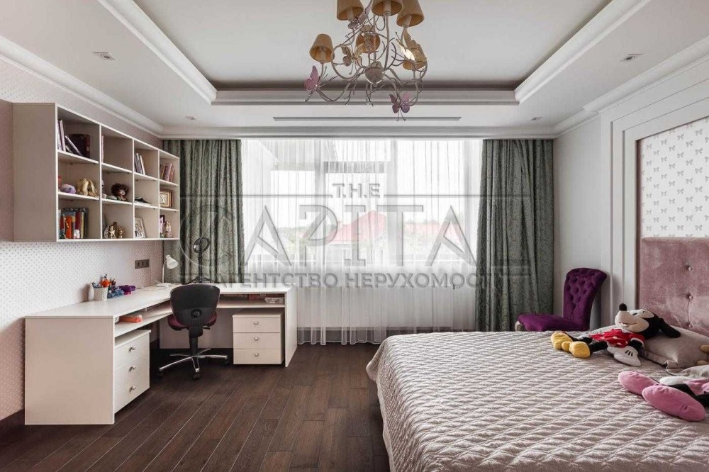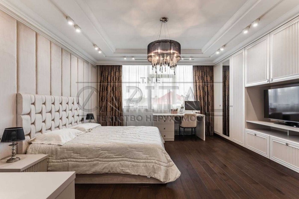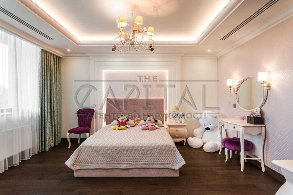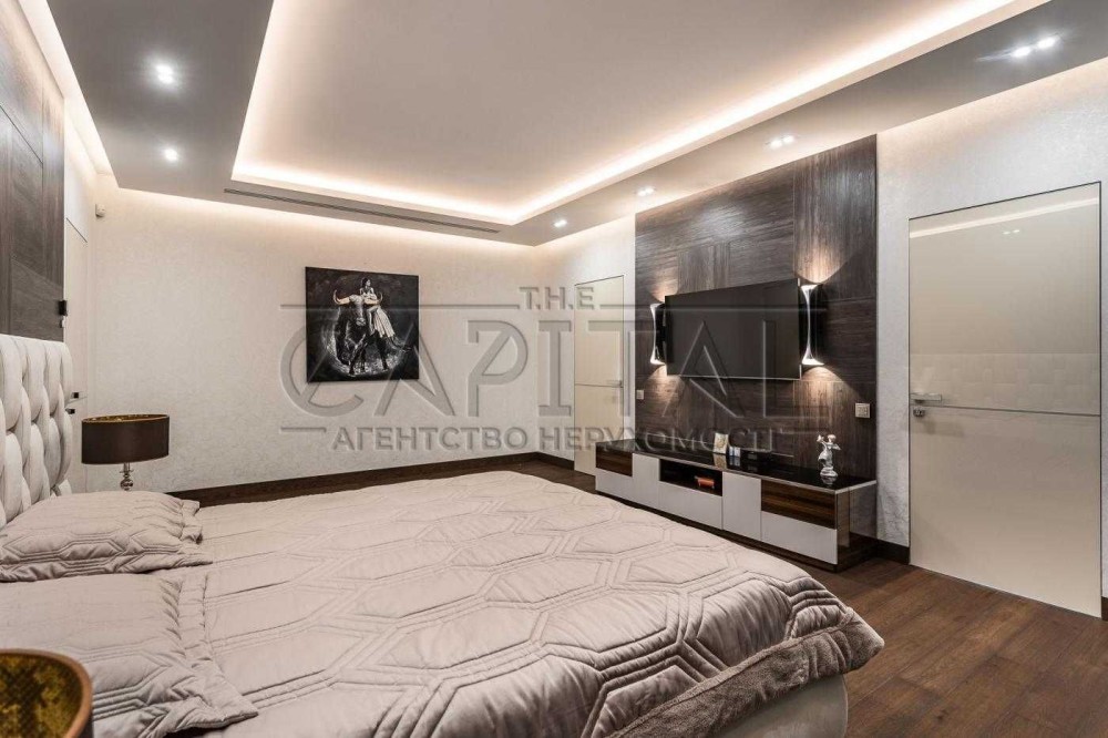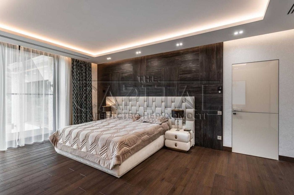 На другому рівні – велика майстер спальня з гардеробом та санвузлом, дві гостьові спальні, велика гардеробна кімната та санвузол.