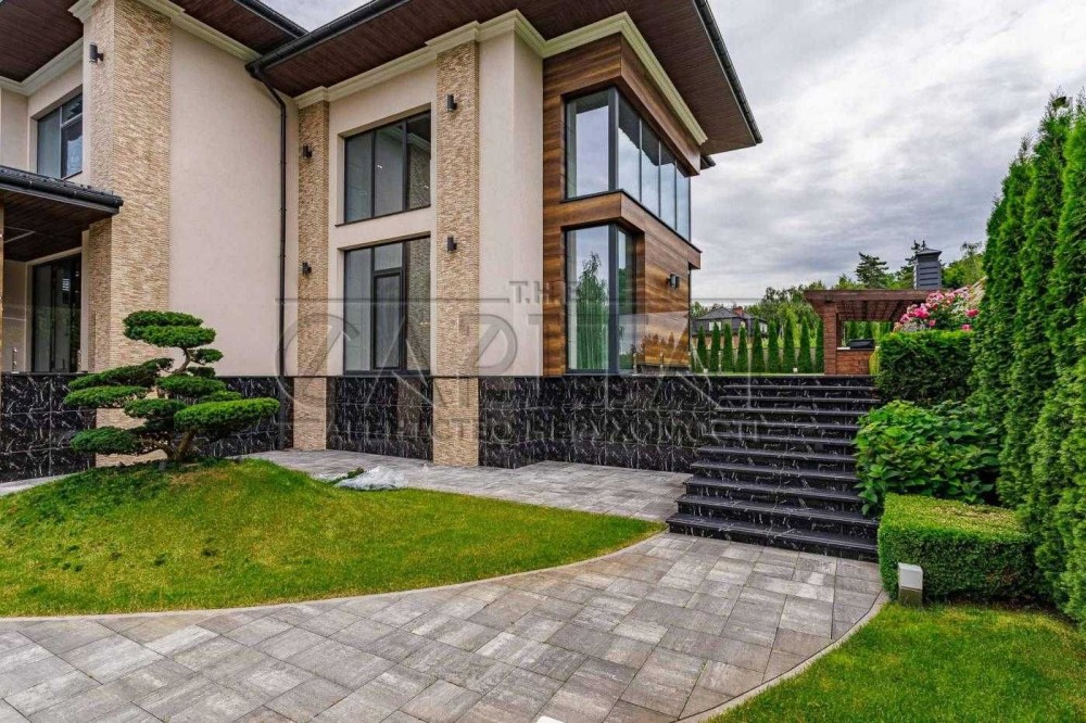 Ландшафтний дизайн ділянки: декоративні дерева та кущі, клумби, автополив, освітлення. Висока огорожа, асфальтований під'їзд, елітне та статусне оточення. Окрема зона барбекю із зоною відпочинку.