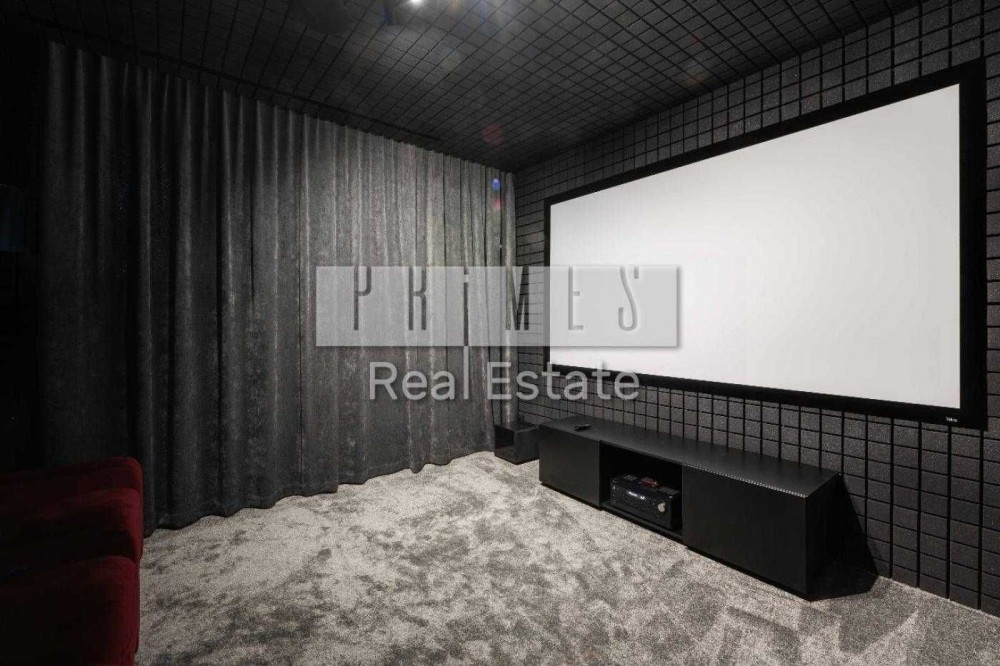 на 1 поверху - кухня-вітальня, вбиральня, кінотеатр, кабінет, санвузол, вихід на терасу (50м2), вихід у гараж ( 45м2)