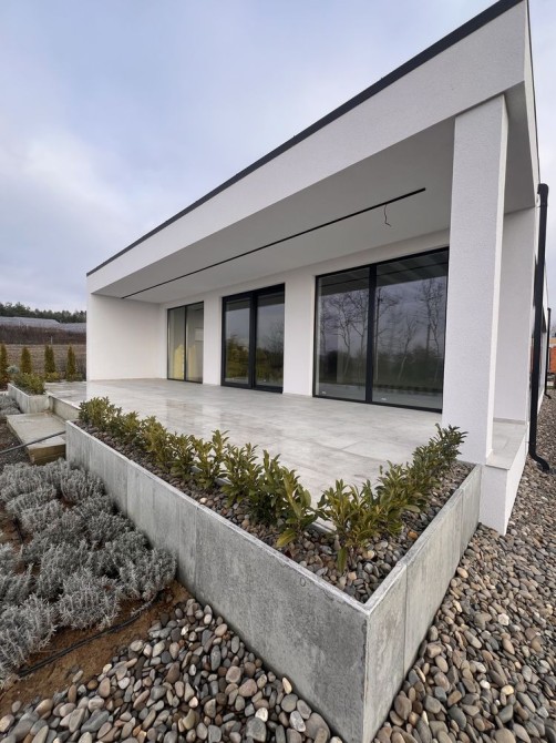 Сучасний фасад створює ефект відкритого простору та гармонійного поєднання з терасою.