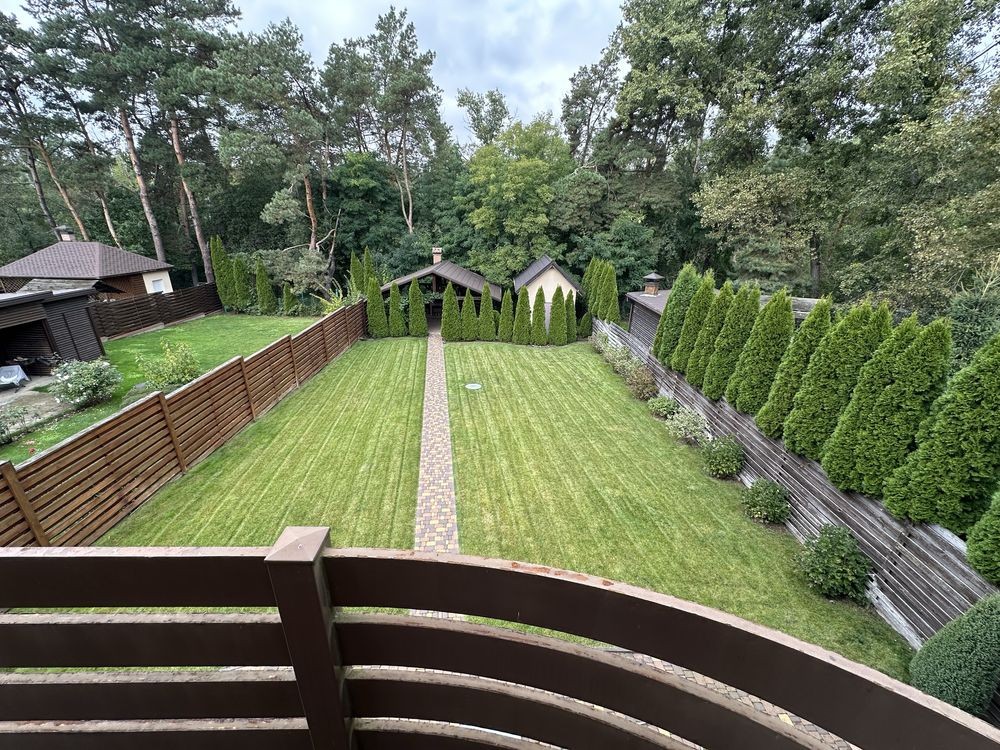 Продається капітальний житловий будинок в охайному, доглянутому стані: заходь - живи. Рік побудови - 2014. Розташування: Київська область, Бориспільський район, село Дударків (район зрубів). Відстань від воріт до ст. метро "Бориспільська" - 22 км, до ст. метро "Лісова" - 26 км. Під'їзд асфальтований. Загальна площа 216,8 кв.м., житлова - 111,6 кв.м., кухня - 12,4 кв.м., відкрита тераса 22 кв.м. В будинку чотири житлові кімнати (спальні), вітальня, два с/вузли з душовими кабінами, котельна, пральна, підвал, гараж на два авто (автоматичні ворота), погріб. Трифазне електропостачання з окремими стабілізаторами (на кожну фазу). Встановлено бензиновий генератор потужністю 6,5 кВт з автоматичним вмиканням у разі зникнення напруги в мережі. Газовий (з джерелом безперебійного живлення) та електричний опалювальні котли, бойлер для підігріву води. Водопостачання - особиста свердловина глибиною 60 метрів з фільтраційною системою очищення води. Чотири накопичувальні ємності (септики): для фекальної води (з вентиляцією) та відведення дощової (талої) води. Відеонагляд, домофон, сигналізація, провідний Інтернет. Площа земельної ділянки 22 сотки. Цільове призначення: будівництво та обслуговування житлового будинку. На території: літня кухня з барбекю, господарче приміщення, погріб, теплиця з полікарбонату, літній душ з вбиральнею, вольєр площею 13 кв.м., садок, газон з автоматичним поливом, город площею 7 соток. У садку: яблуні літніх та осінніх сортів, сливи, персики, вишні, черешня, айва, груша, смородина, виноград. По периметру ділянки паркан з профільного листа (фасадна частина на фундаменті з каменю). Автоматичні розсувні ворота. Будинок не перепродавався. Первісний документ - Свідоцтво про право власності. Поштова адреса, реєстрація місця проживання. Продаж за ціною власника, без комісійних посереднику.