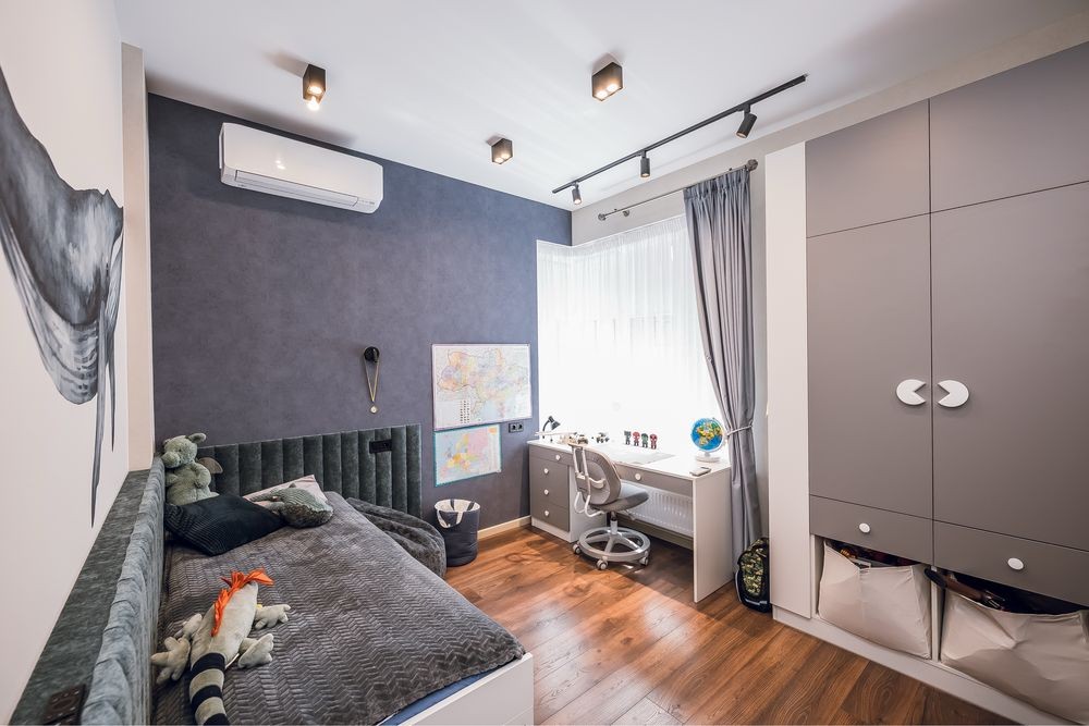 4 кімнати ( гостьова , дві дитячі , та головна мастер спальня зі своїм санвузлом та гардеробом.