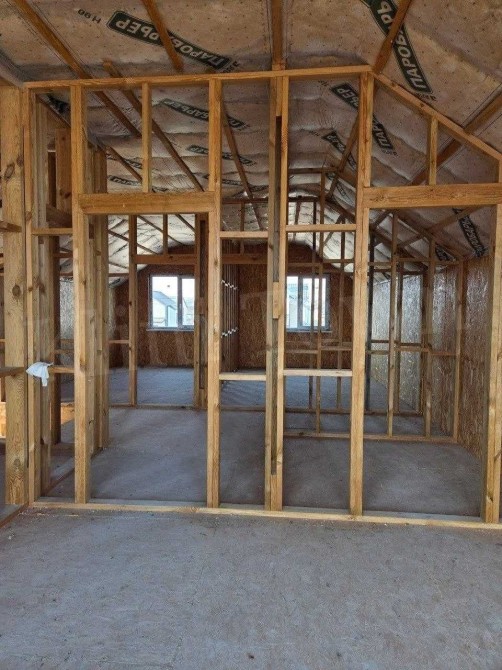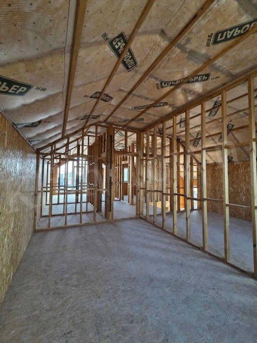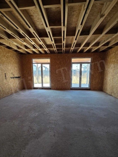 • Будинок побудований із СІП-панелей, дах – металочерепиця. Заведені усі необхідні комунікації (центральне водопостачання, світло, переливний септик). Територія обгороджена, встановлені відкатні ворота та створена єдина концепція фасадного та межового паркану. Залита плита під гараж.