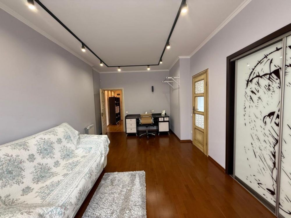 три кімнати та ванна кімната. Дві кімнати з балконами. Одна кімната має власну гардеробну та ванну.