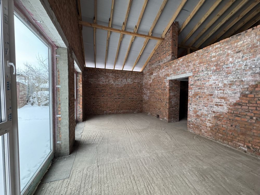 Будинок побудований з цегли. 3 кімнати (2 дитячі та спальня з гардеробною). 2 санвузла. Велика кухня-вітальня з виходом на терасу, та технічна кімната. вікна Veka, встановленні якісні вхідні двері,дах (без утеплення)