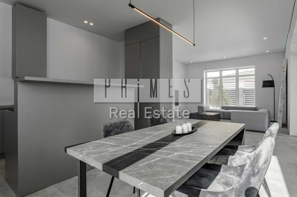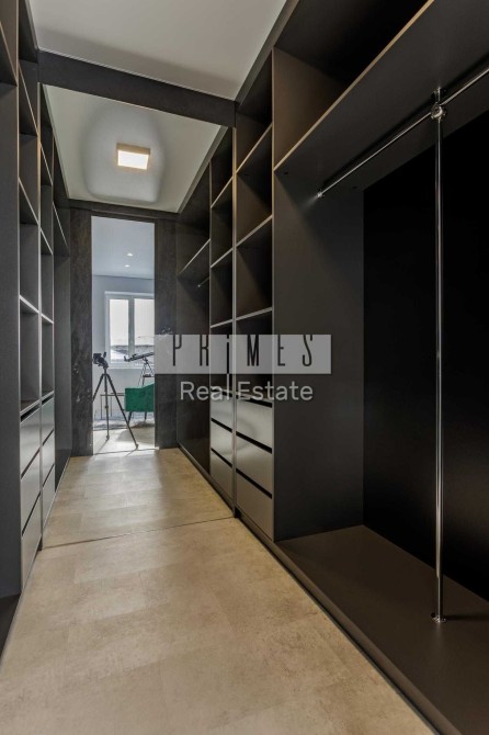 3 спальні, 1 кабінет (можна переробити під спальню), 2 гардеробні, пральні з пралкою та сушильними машинами, гостина з великою кухнею (холодильник, посудомийна машина, духовий шафа, варочна поверхня). Уся техніка Bosch.