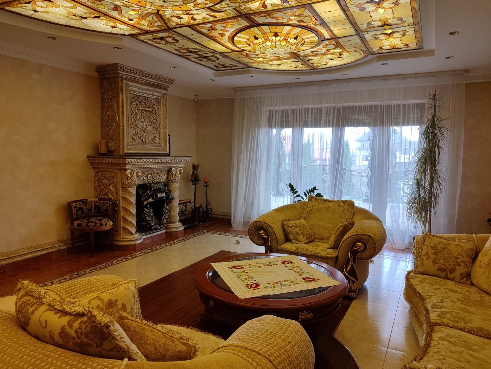 - простора вітальня з каміном -47,2 кв.м. з виходом на терасу;