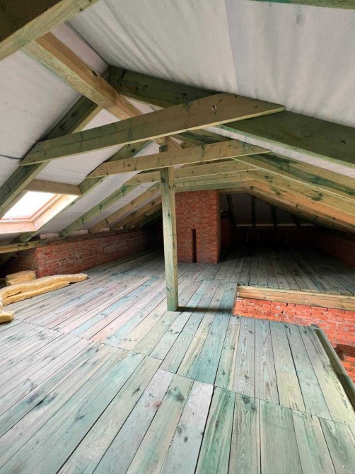 Якісні вікна від фірми Salamander, профіль Mako. Дах з металопрофілю з покриттям ICE (гарантія 50 років). Утеплення фасаду: 150 мм пінопласт. Правильна та хороша теплоізоляція даху та між горищем і другим поверхом – комфортна температура в будинку (тепло на горищі, прохолодно на 2-му поверсі).