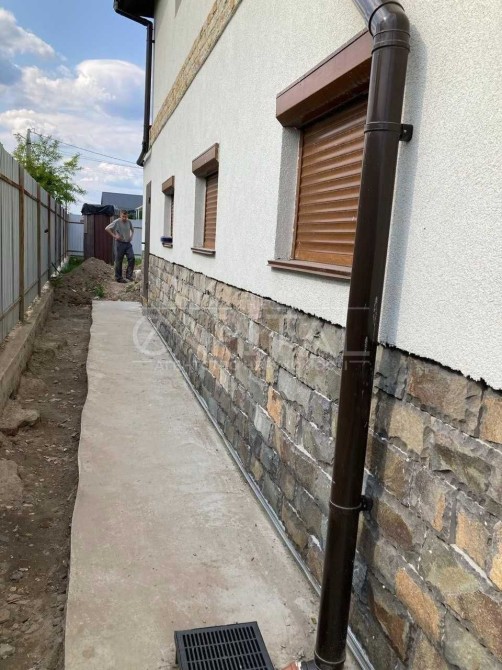 Повністю готова система водовідведення: ливньовки, відмостка по периметру, дренаж, бетонні кільця для збору води
