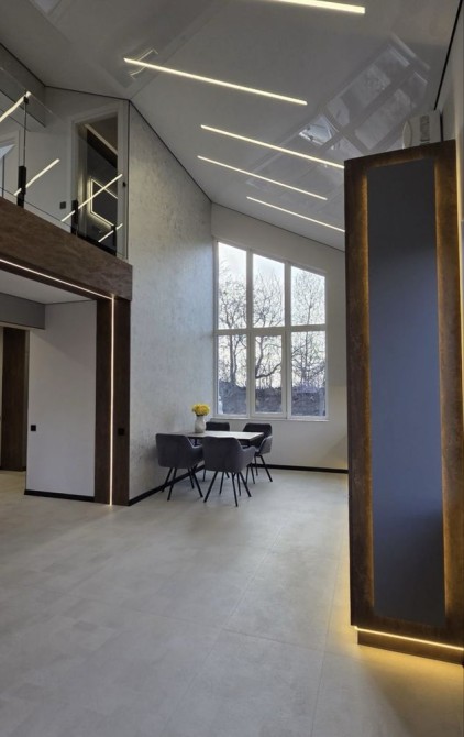 Будинок має зручне та продумане планування: три окремі спальні, простора кухня-студія з вітальнею, гардеробна кімната, два санвузли. Підійде як для сім’ї, так і для тих, хто цінує простір та функціональність.