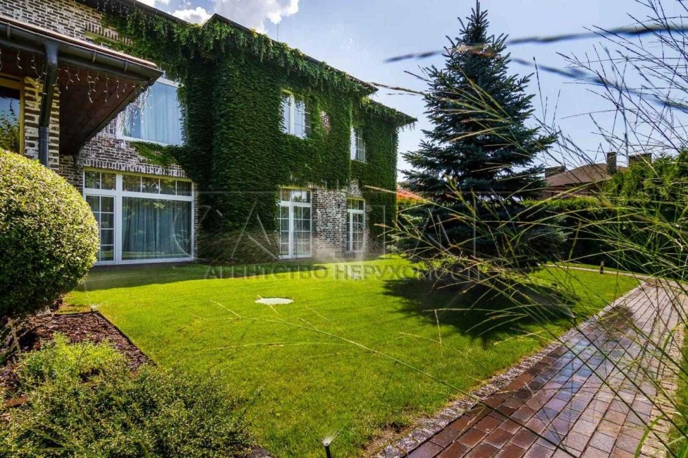На території виконаний дизайнерський ландшафтний дизайн з декоративними рослинами, газоном та зонами для відпочинку.