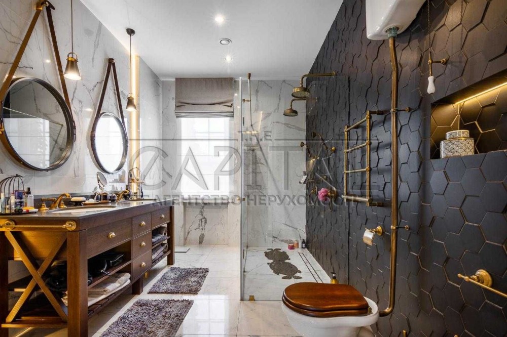 На другому поверсі розміщені: мастер-бедрум з власним санвузлом та гардеробом, друга спальня , ванна кімната , кімната вільного призначення (кабінет/спальня), а також дві гардеробні кімнати.