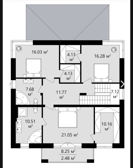 2 поверх: 3 спальні, 3 санвузли, 3 гардеробні