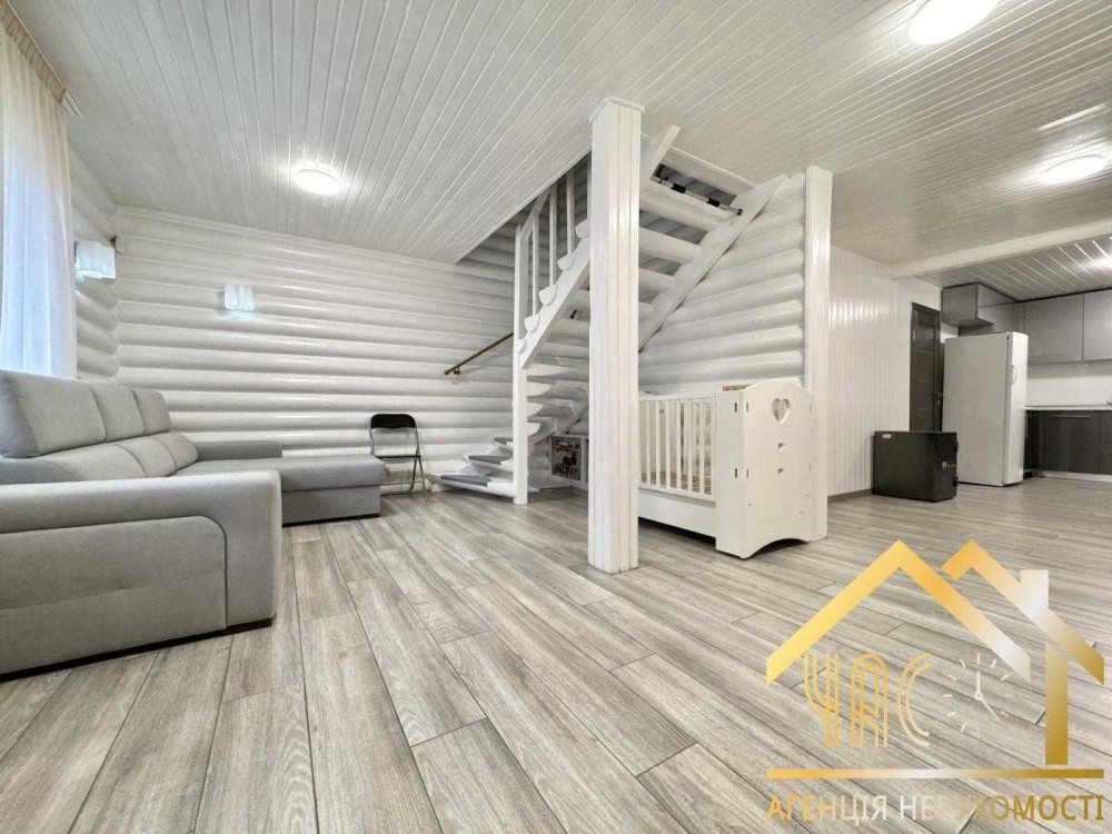 Продається ексклюзивний двоповерховий будинок зі зрубу, розташований у приватному секторі с.Крюківщина