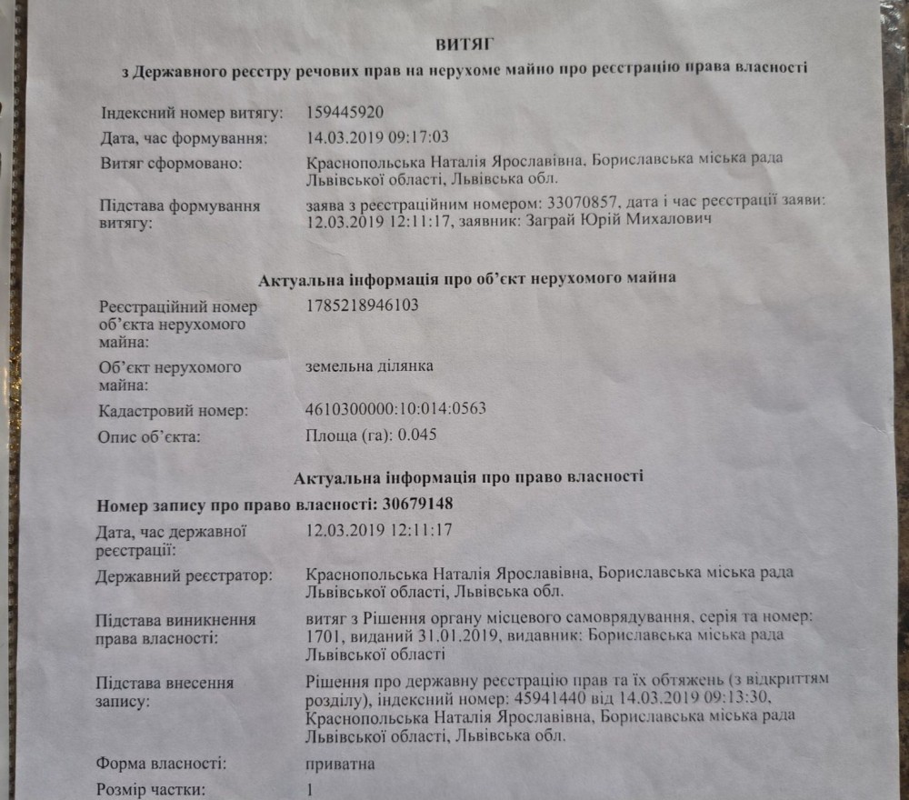 - площа земельної ділянки - 4,5 сот, ділянка - приватизована