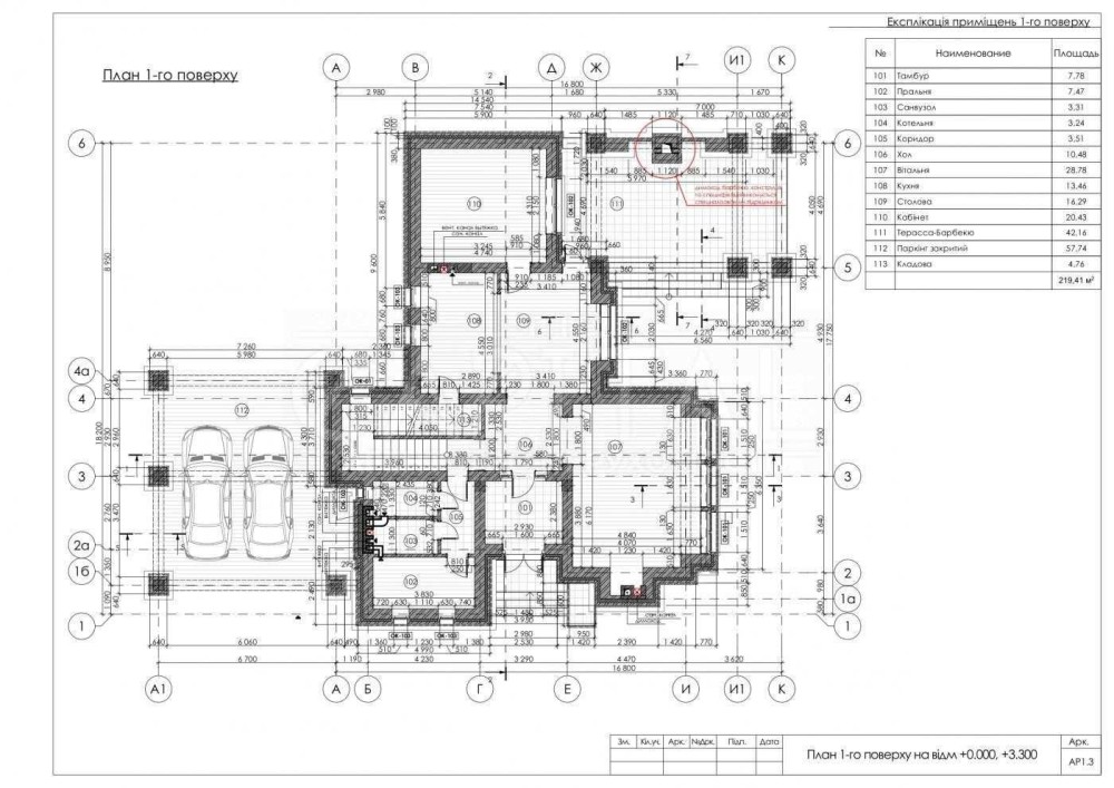 Загальна площа будинку з гаражем 340м2