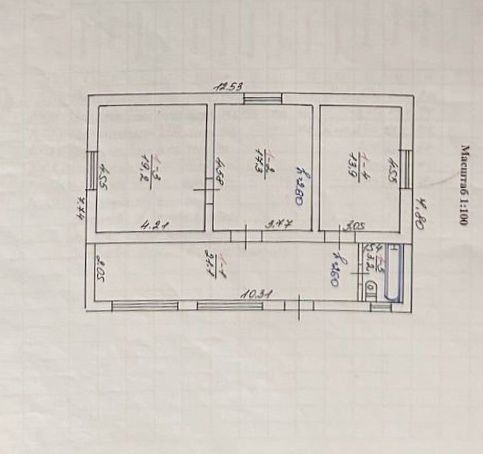 Будинок має три кімнати, санвузол та коридор.