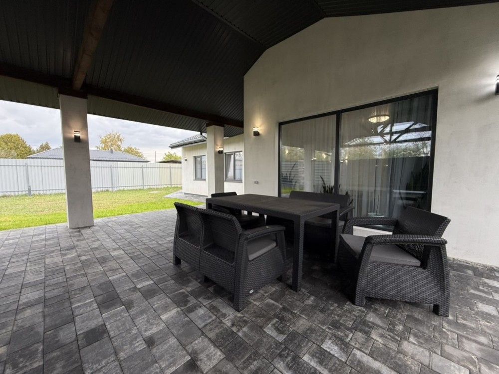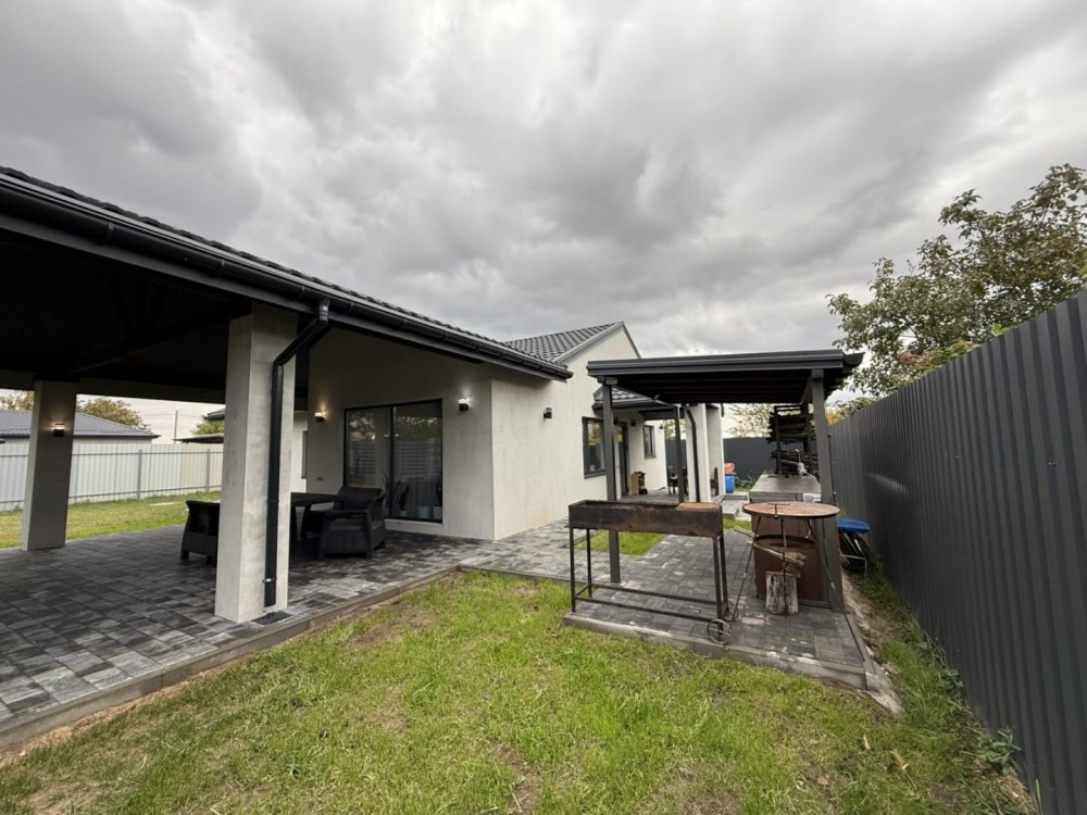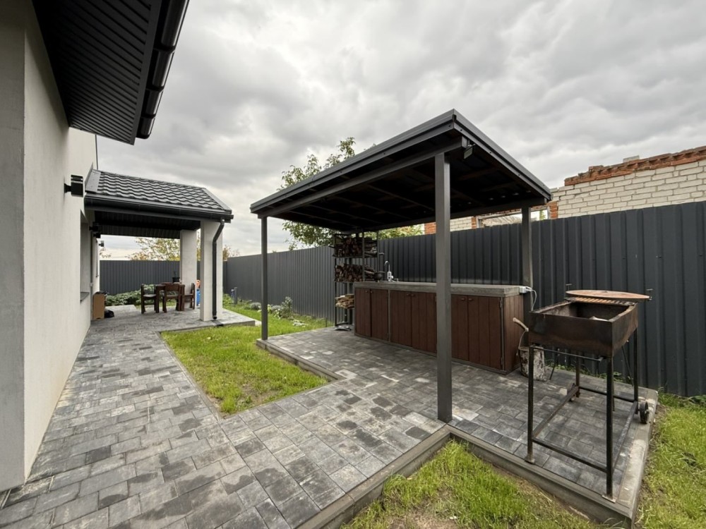 Продається капітальний житловий будинок в охайному, доглянутому стані: заходь - живи. Рік побудови - 2014. Розташування: Київська область, Бориспільський район, село Дударків (район зрубів). Відстань від воріт до ст. метро "Бориспільська" - 22 км, до ст. метро "Лісова" - 26 км. Під'їзд асфальтований. Загальна площа 216,8 кв.м., житлова - 111,6 кв.м., кухня - 12,4 кв.м., відкрита тераса 22 кв.м. В будинку чотири житлові кімнати (спальні), вітальня, два с/вузли з душовими кабінами, котельна, пральна, підвал, гараж на два авто (автоматичні ворота), погріб. Трифазне електропостачання з окремими стабілізаторами (на кожну фазу). Встановлено бензиновий генератор потужністю 6,5 кВт з автоматичним вмиканням у разі зникнення напруги в мережі. Газовий (з джерелом безперебійного живлення) та електричний опалювальні котли, бойлер для підігріву води. Водопостачання - особиста свердловина глибиною 60 метрів з фільтраційною системою очищення води. Чотири накопичувальні ємності (септики): для фекальної води (з вентиляцією) та відведення дощової (талої) води. Відеонагляд, домофон, сигналізація, провідний Інтернет. Площа земельної ділянки 22 сотки. Цільове призначення: будівництво та обслуговування житлового будинку. На території: літня кухня з барбекю, господарче приміщення, погріб, теплиця з полікарбонату, літній душ з вбиральнею, вольєр площею 13 кв.м., садок, газон з автоматичним поливом, город площею 7 соток. У садку: яблуні літніх та осінніх сортів, сливи, персики, вишні, черешня, айва, груша, смородина, виноград. По периметру ділянки паркан з профільного листа (фасадна частина на фундаменті з каменю). Автоматичні розсувні ворота. Будинок не перепродавався. Первісний документ - Свідоцтво про право власності. Поштова адреса, реєстрація місця проживання. Продаж за ціною власника, без комісійних посереднику.