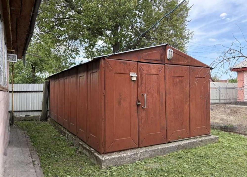 Площа ділянки 12 соток. На подвір'ї є металевий гараж, літня кухня. сарай, погріб.