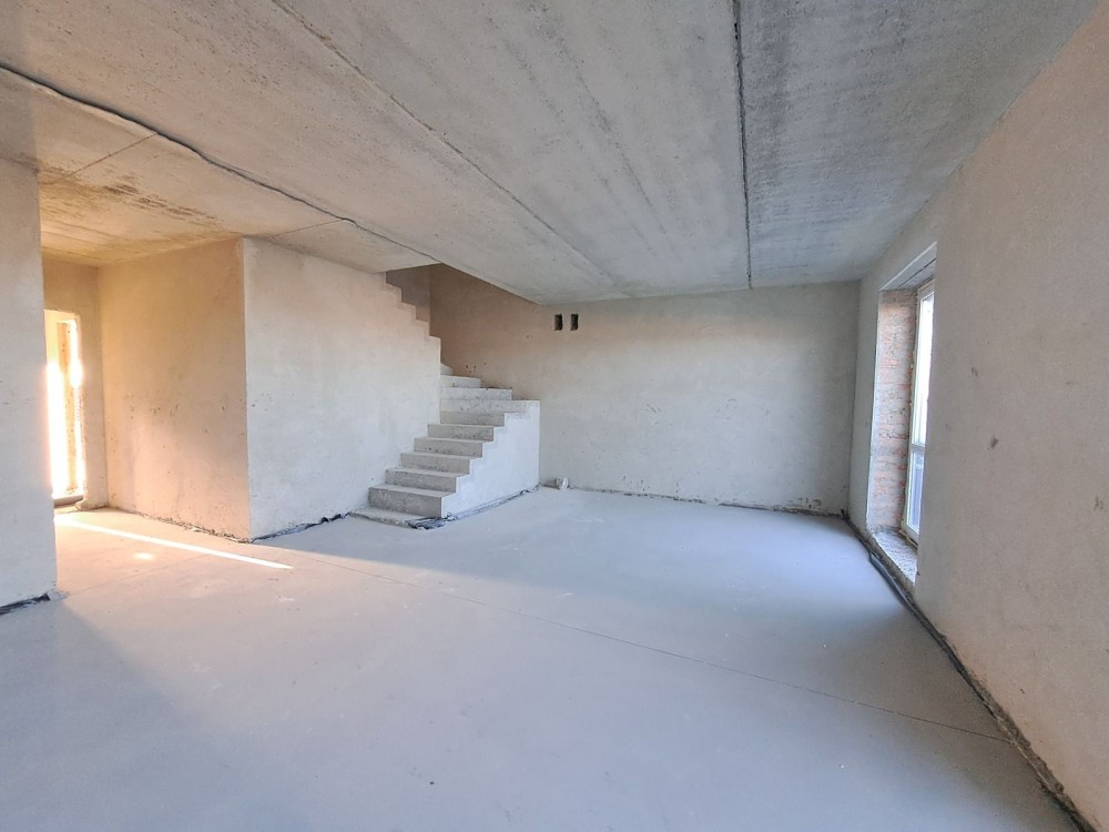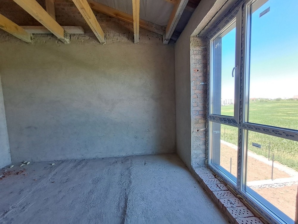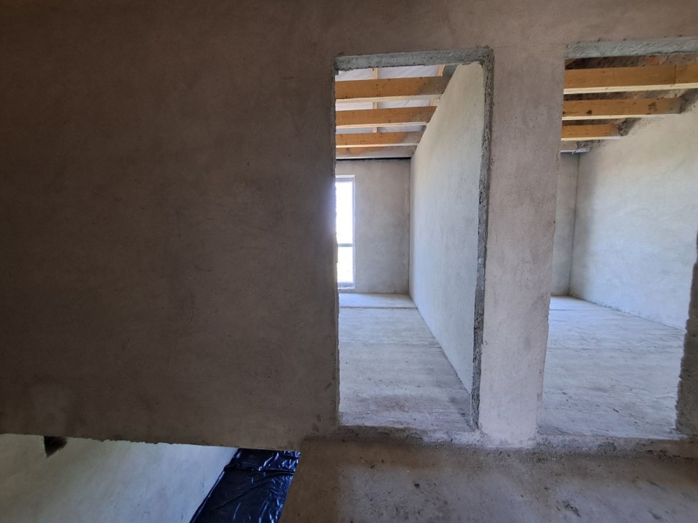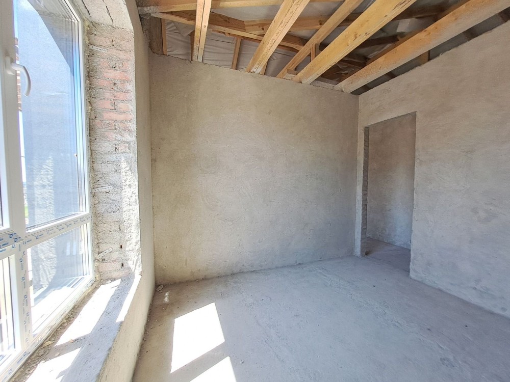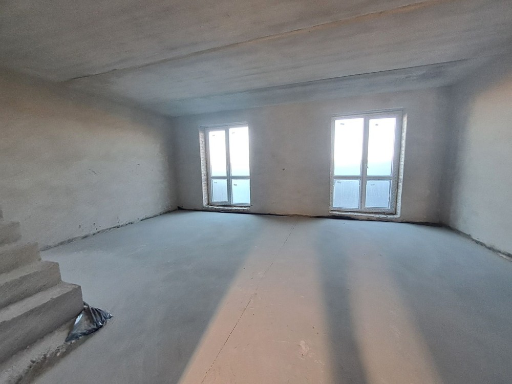 На першому поверсі кухня-студія, санвузол , другий поверх- чотири спальні та санвузол.Стяжка, штукатурка. Центральне водопостачання.Переливний септик.