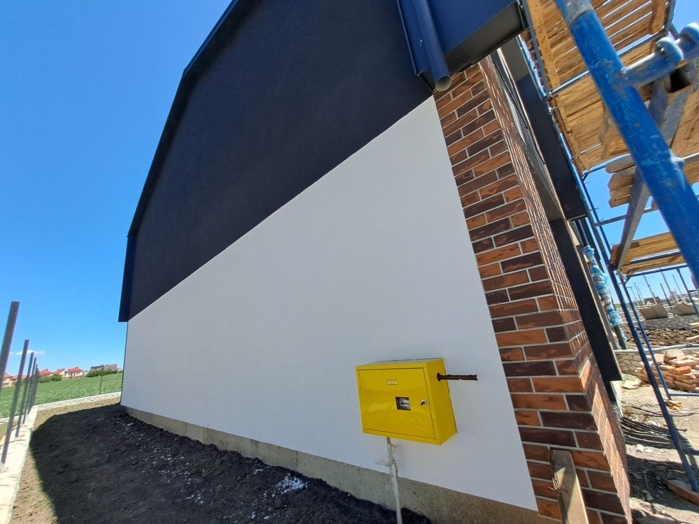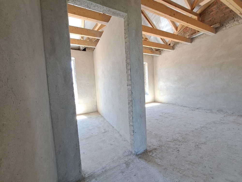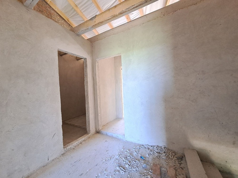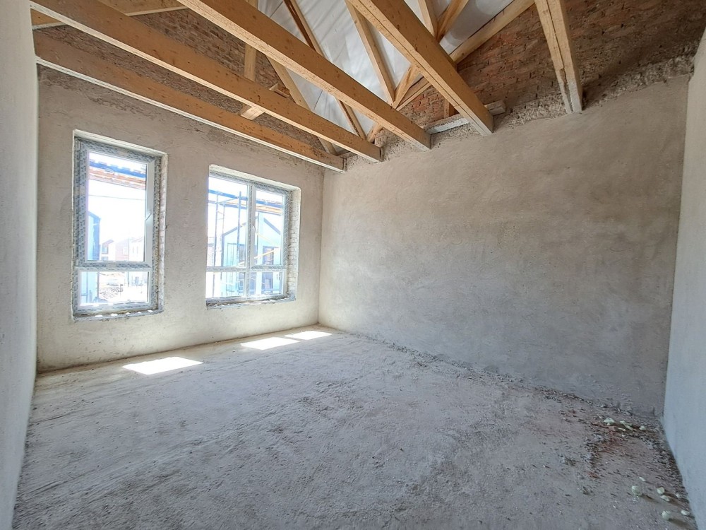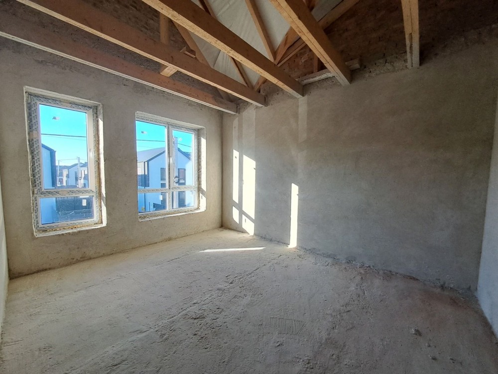 На першому поверсі кухня-студія, санвузол , другий поверх- чотири спальні та санвузол.Стяжка, штукатурка. Центральне водопостачання.Переливний септик.
