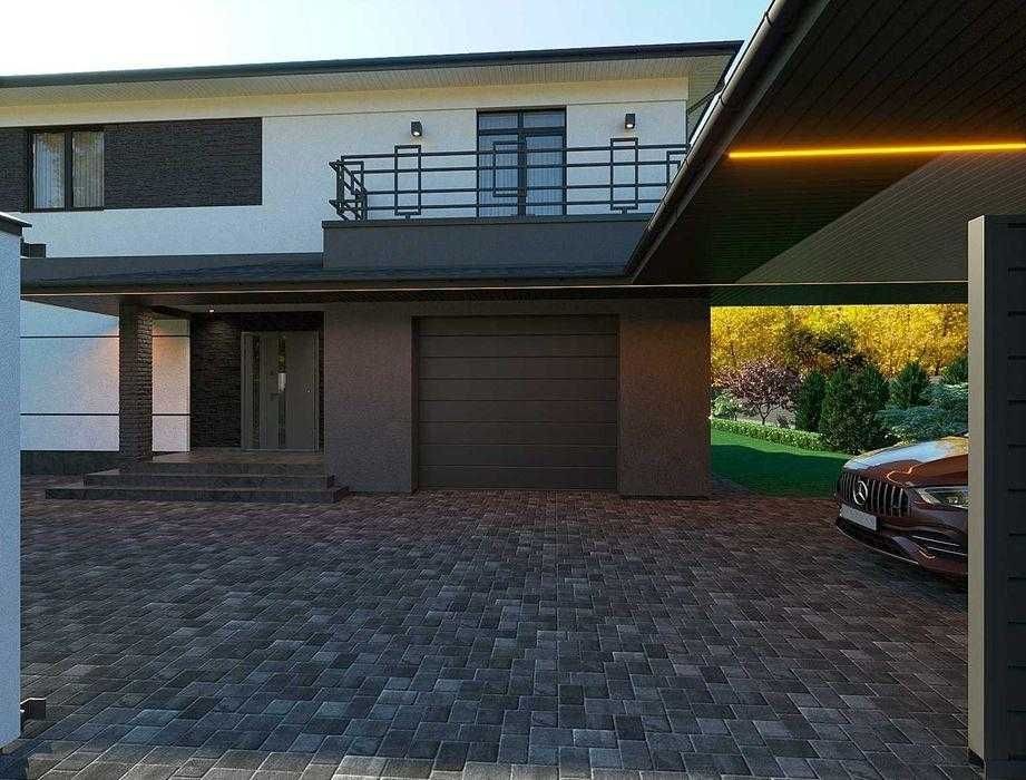 • I поверх: вхідна група, серце будинку – кухня-вітальня з виходом на терасу, гостьова ванна кімната та виокремлений вхід до гаражу + кімната з інженерними системами, вхід до якої також можливо з заднього двору будинку.