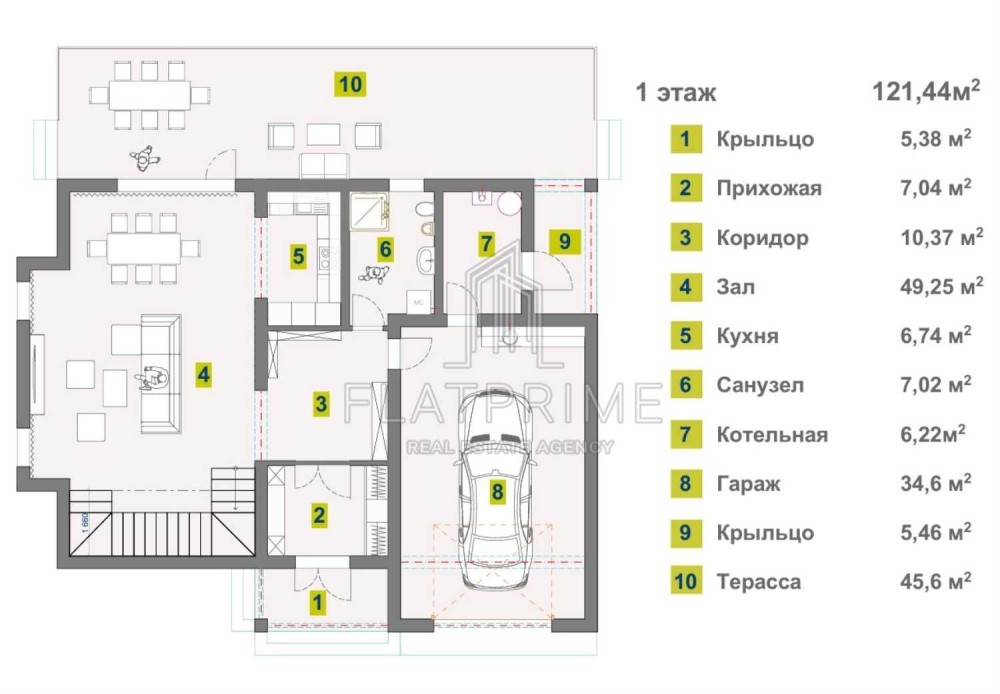 Вашій увазі пропонується просторий будинок з власною терасою 45 м2.