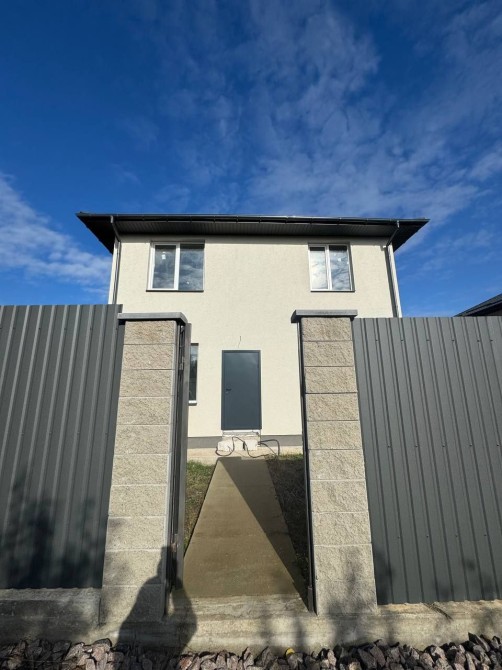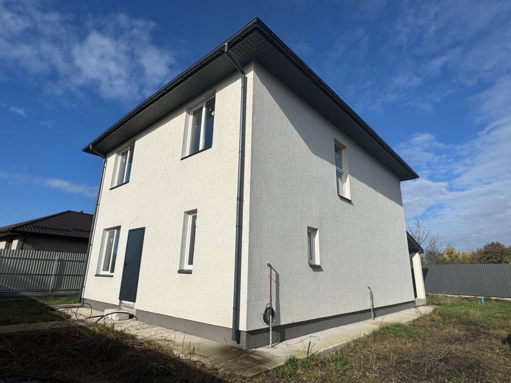 Побудований з газоблоку, утеплений пінопластом, покриття металочерепиця, металопластикові вікна. Базова розводка електрики та сантехніки. Теплий пол по всьому 1-му етапі та на 2-му в санвузлі, гіпсова машинна штукатурка, чистова стяжка пола. В будинок заведено ГАЗ та Світло 7 кВт.
