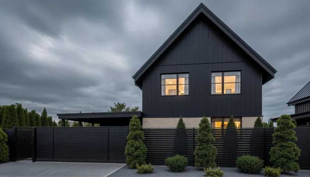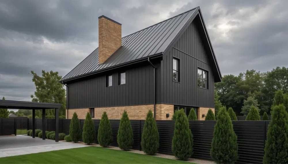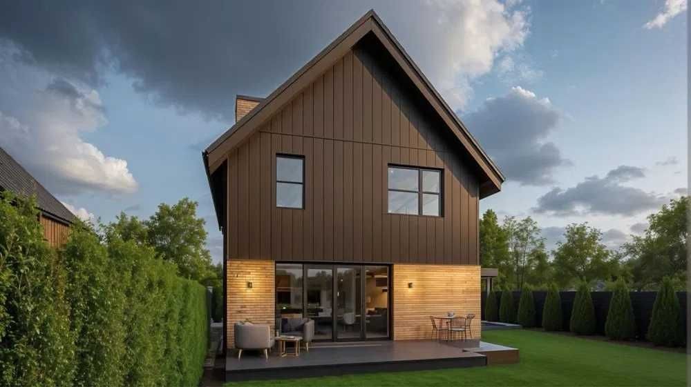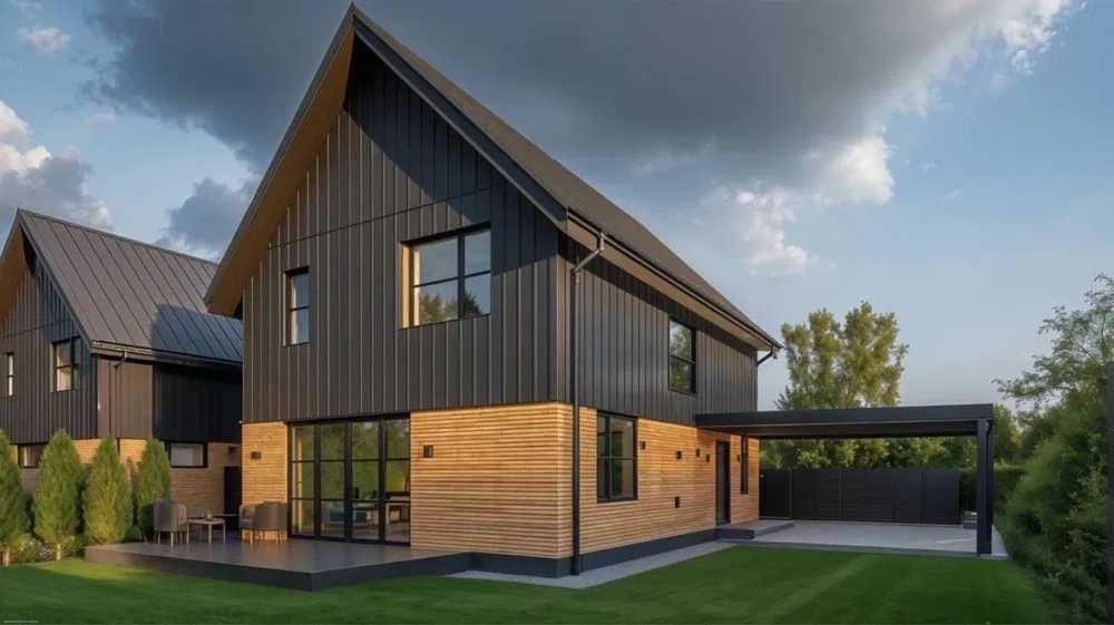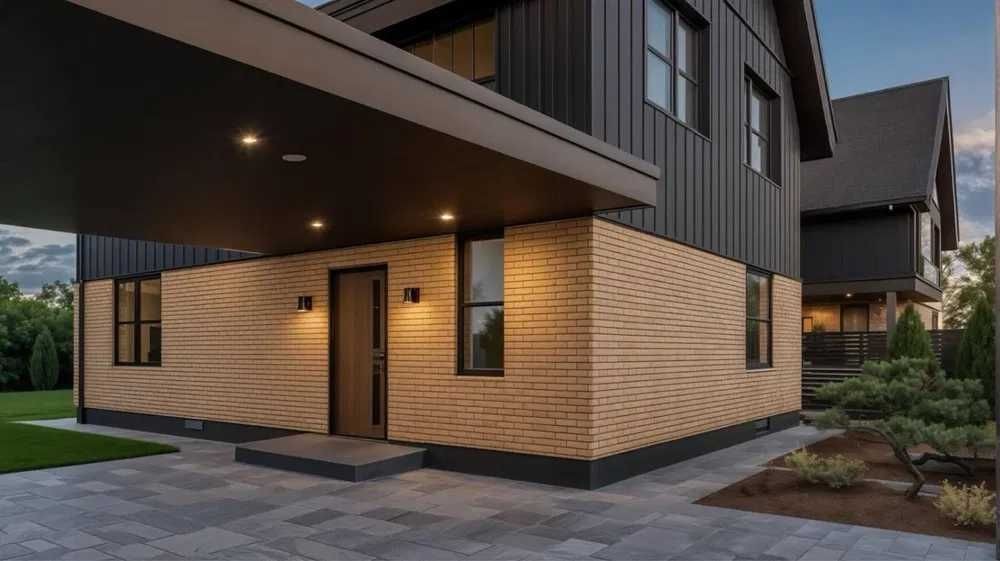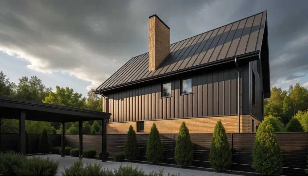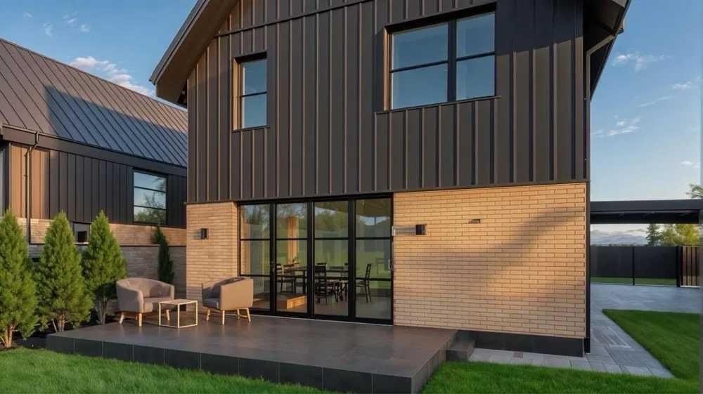 Будинок з Керамоблоку, утеплений ватою. Фасад- клінкерна цегла та метал.